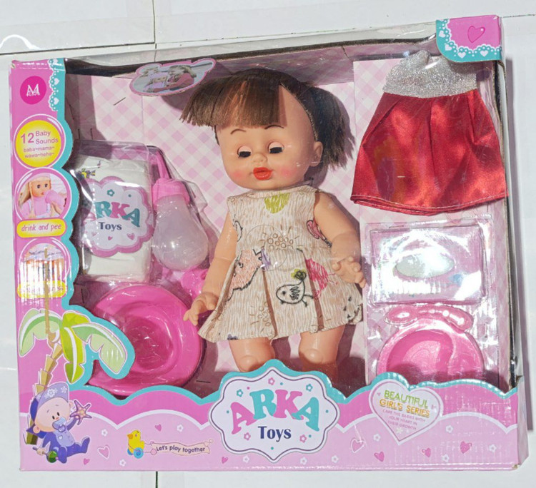 اسباب بازی دخترانه عروسک بی بی بورن با لباس اضافه باتری خور موزیکال جیش کن